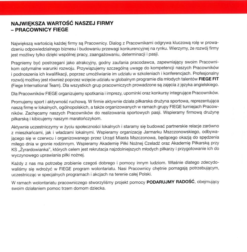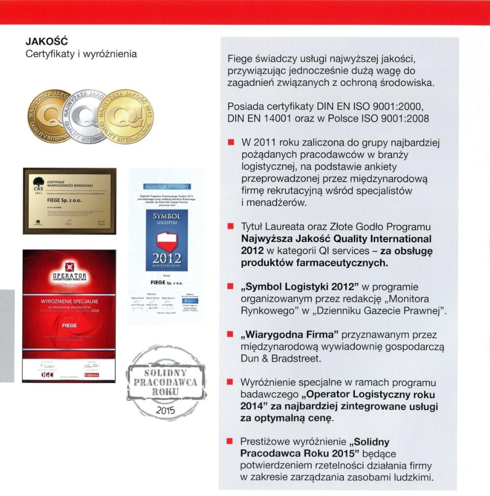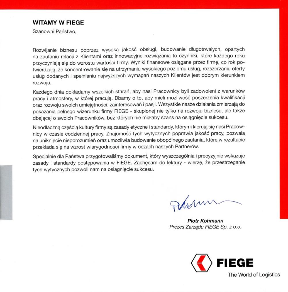 Grupa FIEGE jest obecna na polskim rynku od 1997 r. Swoim klientom oferuje najwyższą jakość usług w zakresie pełnego łańcucha dostaw, dostosowanych do wymogów lokalnego rynku. Na liście klientów obsługiwanych w Polsce znajdują się m.in. firmy: 3M, General Motors/Opel, Pirelli, Continental i Reckitt Benckiser. FIEGE odpowiada za pełen zakres działań logistycznych tych firm, w tym również za ogólnoeuropejską dystrybucję. Łącznie w Polsce znajdują się cztery Centra Logistyczne i dwa terminale FIEGE.